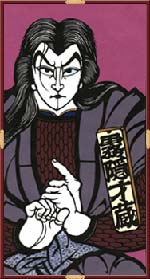 江戸時代の読み物『真田三代記』に“霧隠鹿衛右衛門”という名 の忍者が登場しており、のちに立川文庫『真田十勇士』で霧隠 才蔵として世に知られるようになった。伊賀流忍者の百地三太 夫に師事し忍術の奥義を授かる。当初は盗賊であったが、佐助 との忍術比べのあげく幸村に仕えることとなる。多くの作品によ って描写が異なるが、どこか翳りがありニヒルな忍者として描か れることが多い。 司馬遼太郎の風神の門では、技は売っても魂は売らない忍者 として、幾分明るく爽やかに描かれている。 |